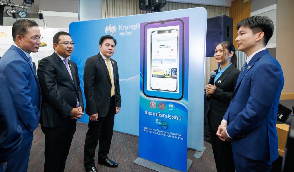 ขณะที่ นายผยง ศรีวณิช กรรมการผู้จัดการใหญ่ ธนาคารกรุงไทย กล่าวว่า ในฐานะธนาคารพาณิชย์ของรัฐ มุ่งมั่นพัฒนา Thailand Open Digital Platform สนับสนุนยุทธศาสตร์ขับเคลื่อนนวัตกรรมดิจิทัลเพื่อภาครัฐอย่างแท้จริง โคยธนาคารส่งเสริมภารกิจของกรมการขนส่งทางบก และกระทรวงคมนาคม อย่างเต็มกำลัง ในการนำเทคโนโลยีสมัยใหม่มาใช้พัฒนาระบบบริการให้มีความสะดวก รวดเร็ว และปลอดภัย เพื่อให้ประชาชนทุกกลุ่มสามารถเข้าถึงบริการภาครัฐได้อย่างทั่วถึง และเท่าเทียม