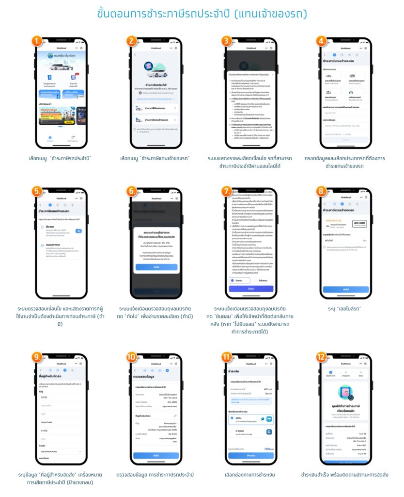 - เลือกรูปแบบการชำระภาษีประจำปีสำหรับรถ (ชำระภาษีประจำปีสำหรับรถของตนเองหรือชำระภาษีแทนเจ้าของรถ)
