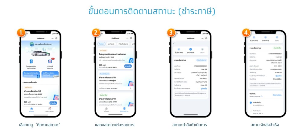 เมื่อต่อภาษีรถ 2568 ผ่าน “KlubRoad (ขับรถ)” บนแอป ‘เป๋าตัง’ แล้ว ผู้ใช้งานสามารถติดตามสถานะการต่อภาษี ชำระภาษีรถประจำปี โดยมีขั้นตอนดังนี้