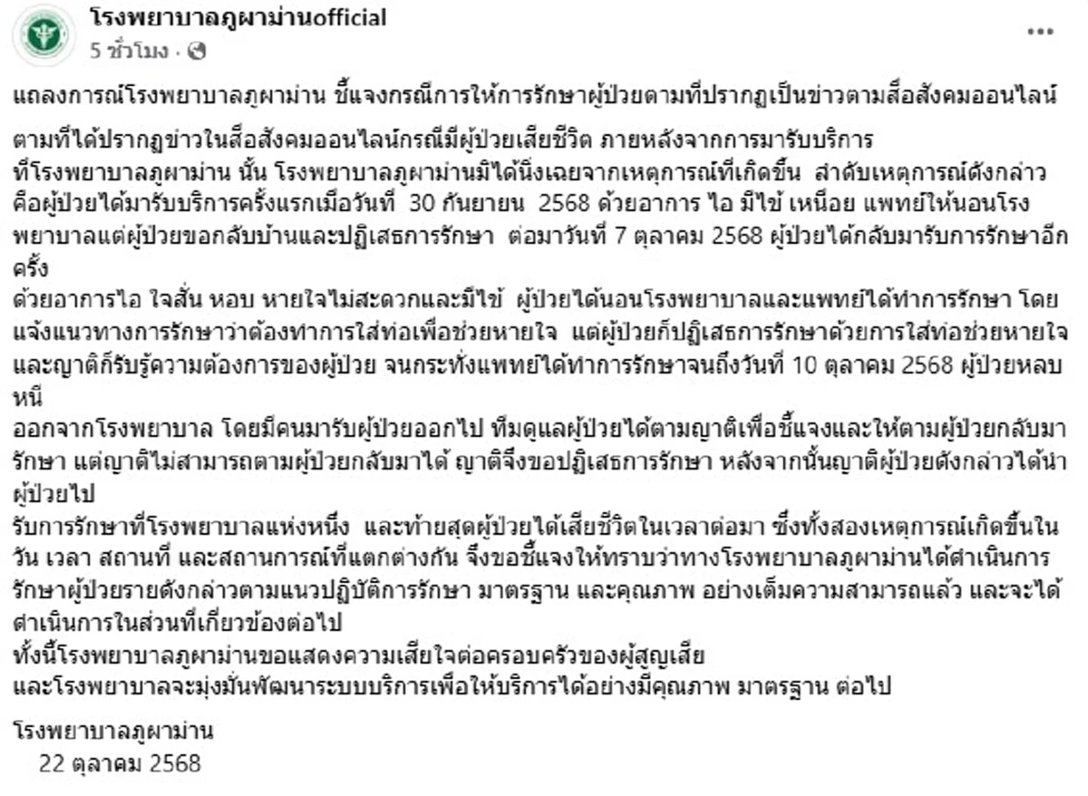 วันที่ 22 ตุลาคม 2568 จากกรณีที่ก่อนหน้านี้ พล.ต.นพ.เหรียญทอง แน่นหนา ผู้อำนวยการโรงพยาบาลมงกุฎวัฒนะ โพสต์ประกาศหยุดให้บริการผู้ป่วยในโครงการ สิทธิบัตรทอง (บัตร 30 บาท) หลังสำนักงานหลักประกันสุขภาพแห่งชาติ (สปสช.) ค้างชำระค่าบริการกว่า 100 ล้านบาท