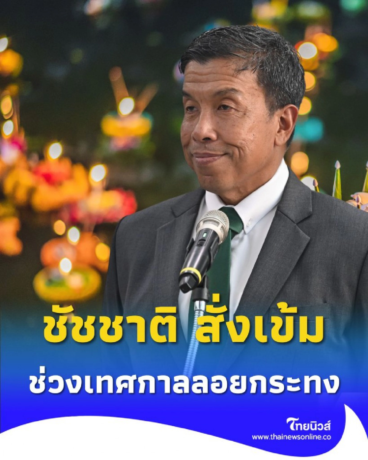ชัชชาติ สั่งเข้มช่วงเทศกาล (22 ต.ค. 68) ณ บริเวณหน้าห้องประชุมสภากรุงเทพมหานคร อาคารไอราวัตพัฒนา ศาลาว่าการกรุงเทพมหานคร (ดินแดง) : นายชัชชาติ สิทธิพันธุ์ ผู้ว่าราชการกรุงเทพมหานคร เปิดเผยถึงมาตรการความปลอดภัยช่วงเทศกาลลอยกระทง และการรับมือฝุ่น PM2.5 ในช่วงฤดูหนาว ว่า เรื่องงานลอยกระทงในปีนี้จะเน้นย้ำเรื่องความปลอดภัยเป็นหลักเพื่อสร้างความมั่นใจให้กับนักท่องเที่ยว โดยให้ทุกหน่วยงานรายงานสถานที่จัดงานลอยกระทงในพื้นที่ของตนเข้ามา และเน้นย้ำให้คาดการณ์ภัยที่อาจเกิดขึ้นได้ในหลายรูปแบบ เช่น โคมลอย การจุดประทัด-ดอกไม้ไฟ การล่องเรือในแม่น้ำ ซึ่งในปีนี้ได้มีการซักซ้อมการกู้ภัยทางเรืออย่างเข้มข้น เนื่องจากที่ผ่านมามีเหตุการณ์ไฟไหม้เรือในแม่น้ำเจ้าพระยา