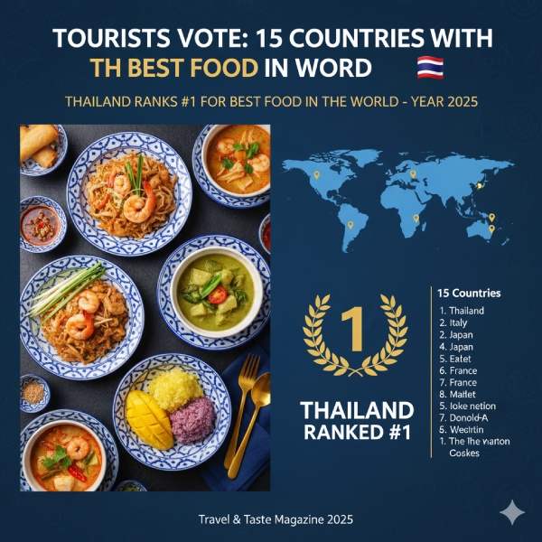 ที่มา : ปีนี้ (2025) นนท.โหวตยกให้ "ประเทศไทย" แชมป์อาหารโลก แล้วชาติใดอยู่อันดับ 2