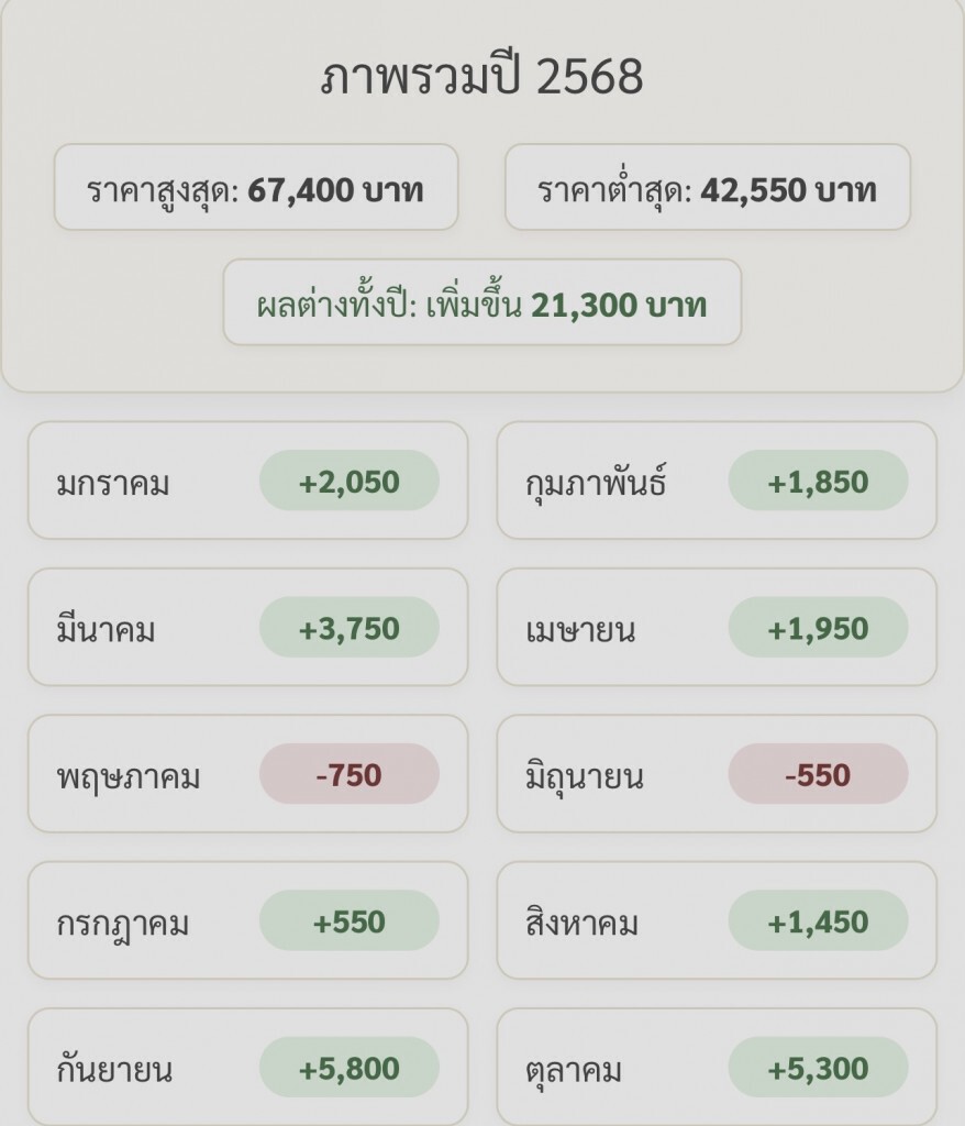 ราคาทองคำตั้งแต่ต้นปี 2568 (1 ม.ค. - 25 ต.ค.) ปรับตัวเพิ่มขึ้นรวม 21,300 บาท