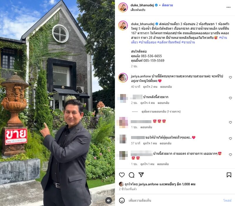 ประกาศส่งต่อบ้านหลังงามที่ถ่ายละครมาหลายเรื่อง ดุ๊ก ภาณุเดช โพสต์คลิปยืนอยู่หน้าบ้านหลังสวย พร้อมข้อความขาย พร้อมเผยเหตุผลด้วยว่า