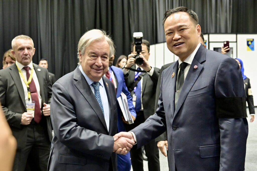 นายอนุทินหารือทวิภาคีกับ “อันโตนิอู มานูแอล เดอ โอลิไวรา กุแตเรซ” H.E. Mr. Antonio Manuel de Oliveira Guterres) เลขาธิการสหประชาชาติ ถึงสถานการณ์ความมั่นคงในภูมิภาค โดยนายกรัฐมนตรีกล่าวถึงการลงนามถ้อยแถลงผลการพบหารือระหว่างนายกรัฐมนตรีไทยและนายกรัฐมนตรีกัมพูชา เป็นการยืนยันว่า ไทยต้องการสันติในฐานะประเทศเพื่อนบ้าน ขณะเดียวกันก็ต้องดำเนินการเพื่อปกป้องอธิปไตย และรักษาไว้ซึ่งความมั่นใจถึงสวัสดิภาพชีวิตและความปลอดภัยของประชาชนคนไทย
