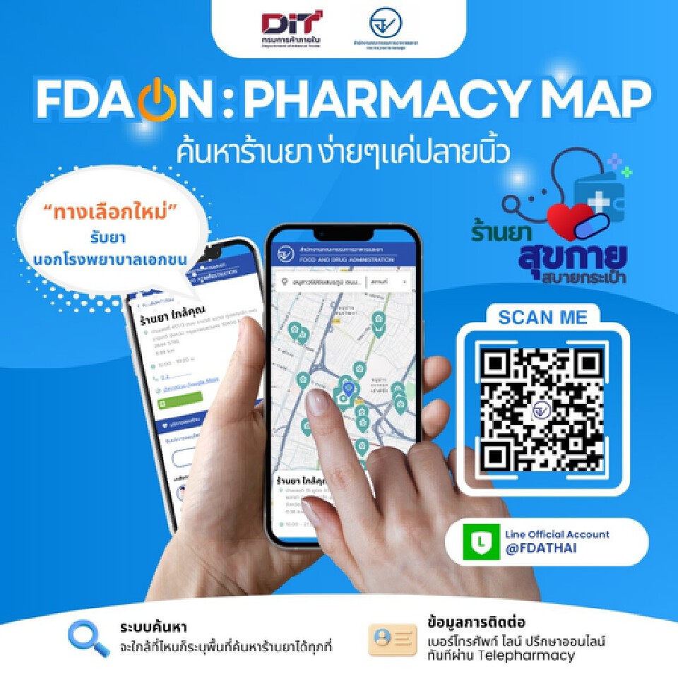ที่มา : เช็กร้านยาใกล้บ้าน สุขกาย สบายกระเป๋า 3,400 แห่ง ผ่าน LINE @FDAThai