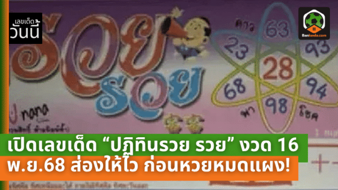 เปิดเลขเด็ด “ปฏิทินรวย รวย” งวด 16 พฤศจิกายน 68 ส่องให้ไว ก่อนหวยหมดแผง!