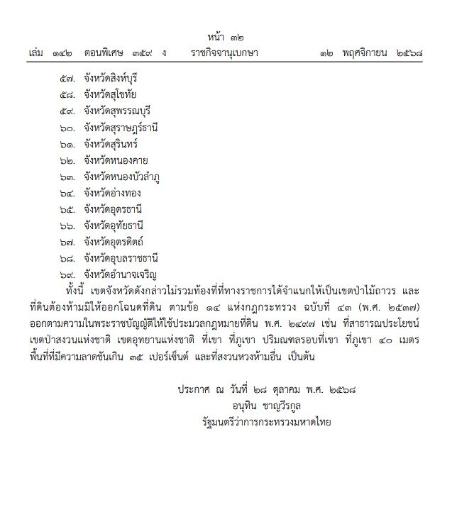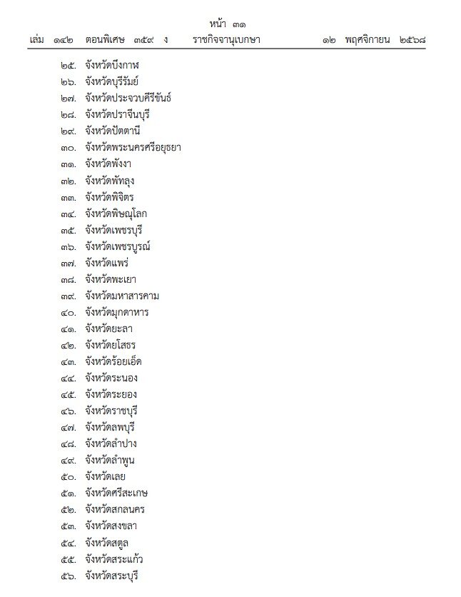 เมื่อวันที่ 13 พฤศจิกายน ผู้สื่อข่าวรายงานว่า วานนี้ (12 พฤศจิกายน) เว็บไซต์ราชกิจจานุเบกษาเผยแพร่ ประกาศกระทรวงมหาดไทย เรื่อง กำหนดจังหวัดที่จะทำการสำรวจรังวัดทำแผนที่เพื่อออกโฉนดที่ดิน ปีงบประมาณ พ.ศ.2569 โดย นายอนุทิน ชาญวีรกูล รัฐมนตรีว่าการกระทรวงมหาดไทย ประกาศ ณ วันที่ 28 ตุลาคม 2568