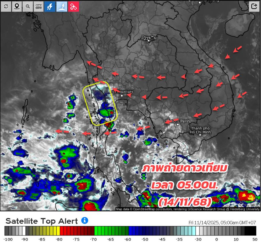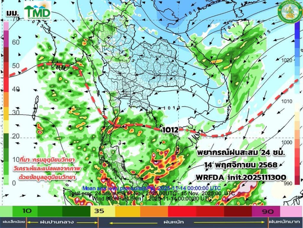 พยากรณ์ฝนสะสม วันที่ 14 พ.ย. 2568