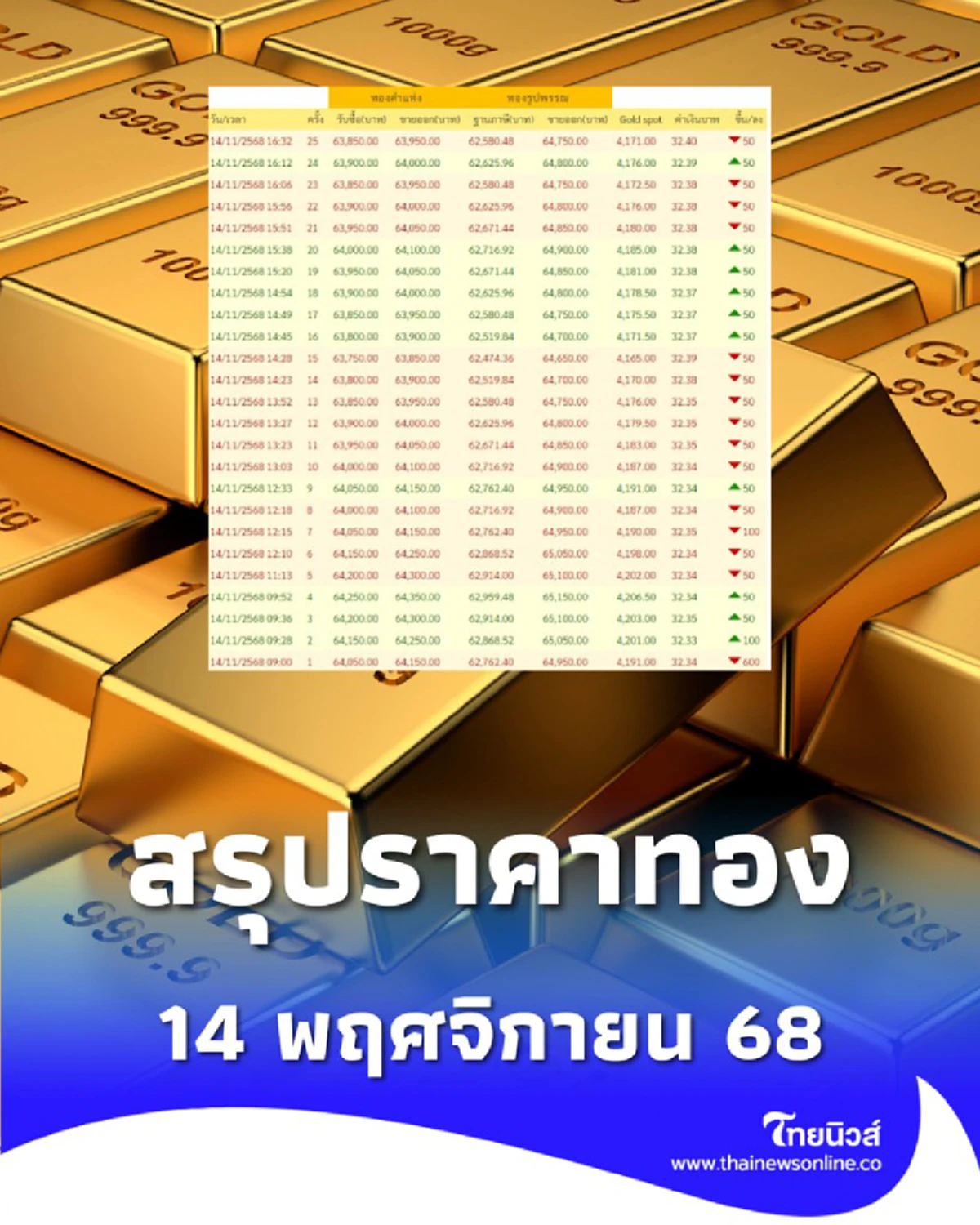 สรุปราคาทองวันนี้ 14/11/2568 16:32 ครั้งที่ 25
