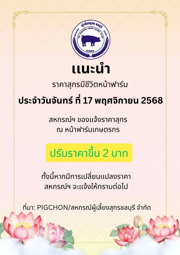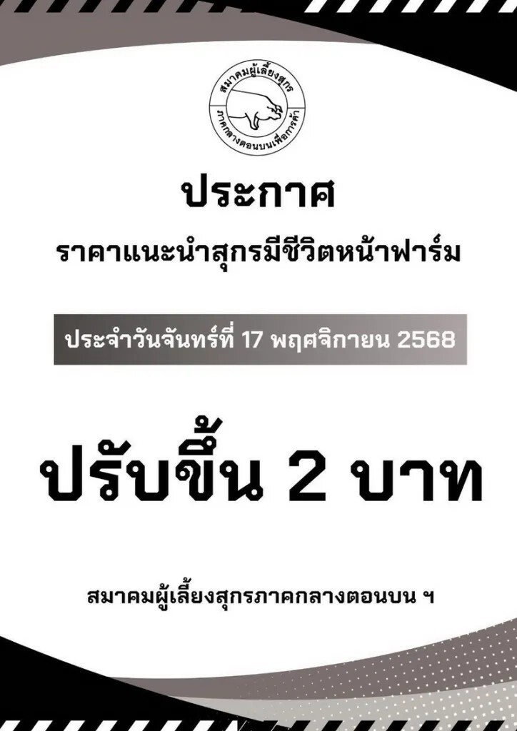 รู้หรือยัง "หมู-ไข่ไก่” ประกาศปรับขึ้นราคา มีผลวันนี้ (17 พ.ย.68) ไข่ปรับขึ้นแผงละ 6 บาท หมู ปรับหน้าฟาร์ม 2 บาทต่อกิโลกรัม