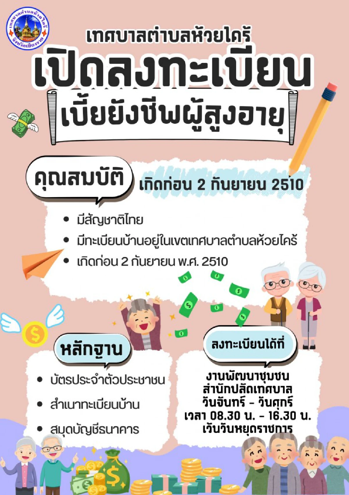 ช่วงเวลา “ยืนยันสิทธิ/ลงทะเบียน” เบี้ยยังชีพผู้สูงอายุ ปีงบประมาณ 2570
