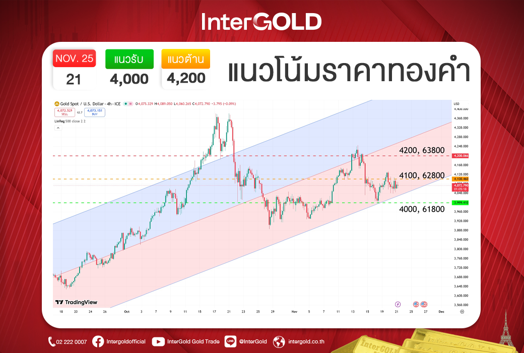 ที่มา : บทวิเคราะห์ราคาทองคำประจำวันที่ 21 พฤศจิกายน 2568 - InterGold