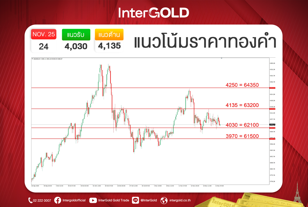 ที่มา : บทวิเคราะห์ราคาทองคำประจำวันที่ 24 พฤศจิกายน 2568 - InterGold