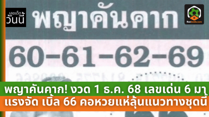 พญาคันคากประกาศศักดา! งวด 1 ธ.ค. 68 เลขเด่น 6 มาแรงจัด เบิ้ล 66 คอหวยแห่ลุ้นแนวทางชุดนี้แบบไม่ยั้ง