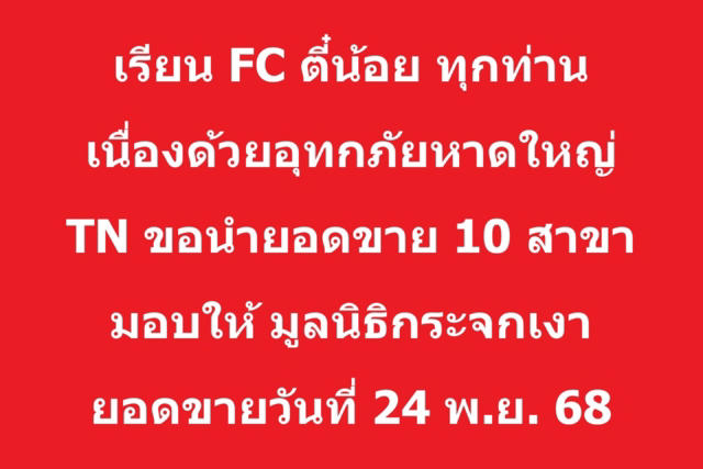 ตั้งแต่เวลา 10.30-05.00 น .มอบให้ มูลนิธิกระจกเงา เพื่อไปช่วยผู้ที่ได้รับความเดือดร้อน ทีอำเภอหาดใหญ่ ยอดขายทั้งหมดไม่หักค่าใช้จ่ายใดๆ ทั้งสิ้น ของดใช้โปร ฟรี! รีฟิล 10 สาขาดังกล่าว