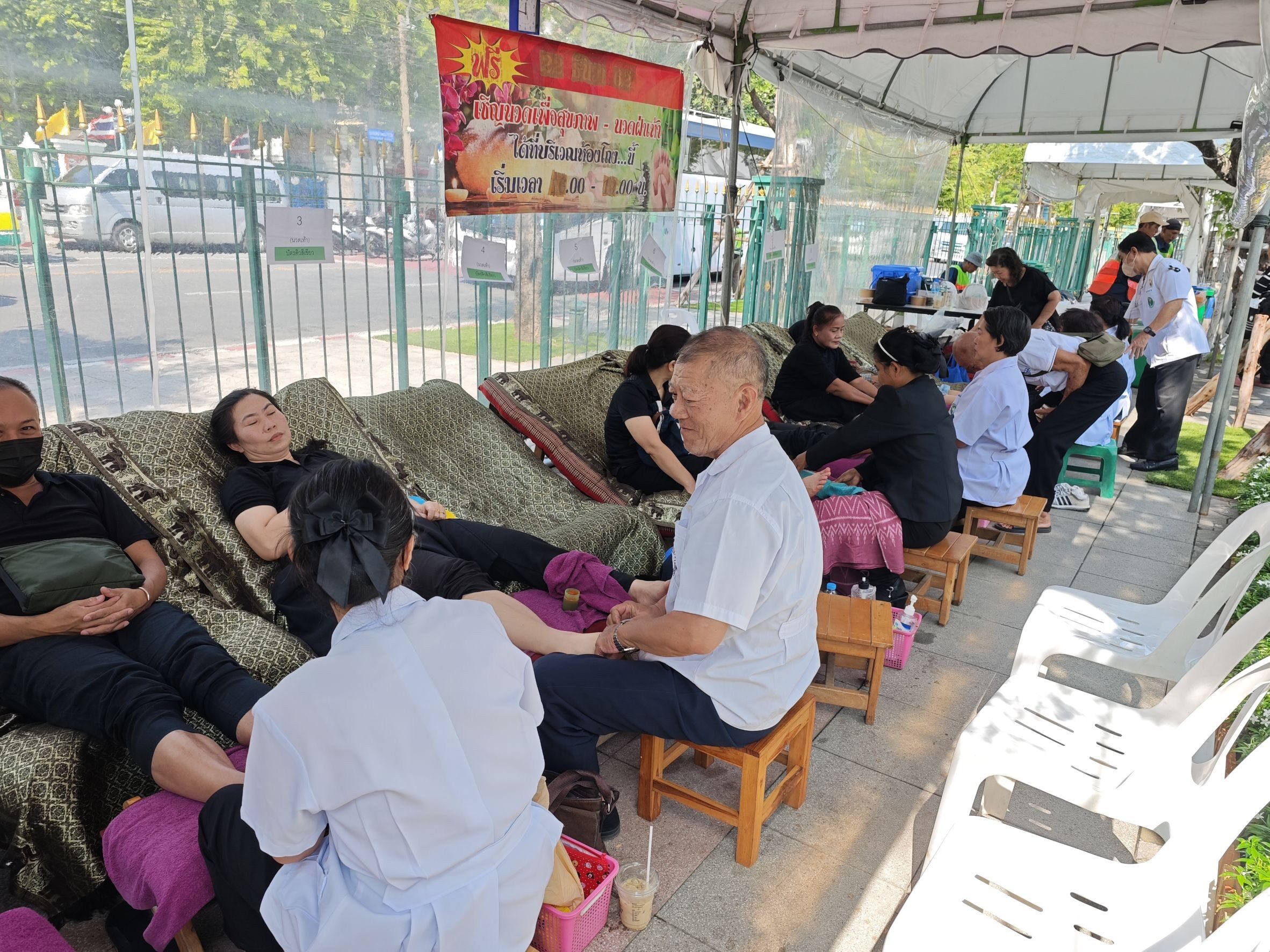 ประชาชนใช้บริการนวดจากจิตอาสาแพทย์แผนไทย วันละกว่า 200 คน ไม่ย่อท้อ ขอตอบแทนพระพันปีหลวง