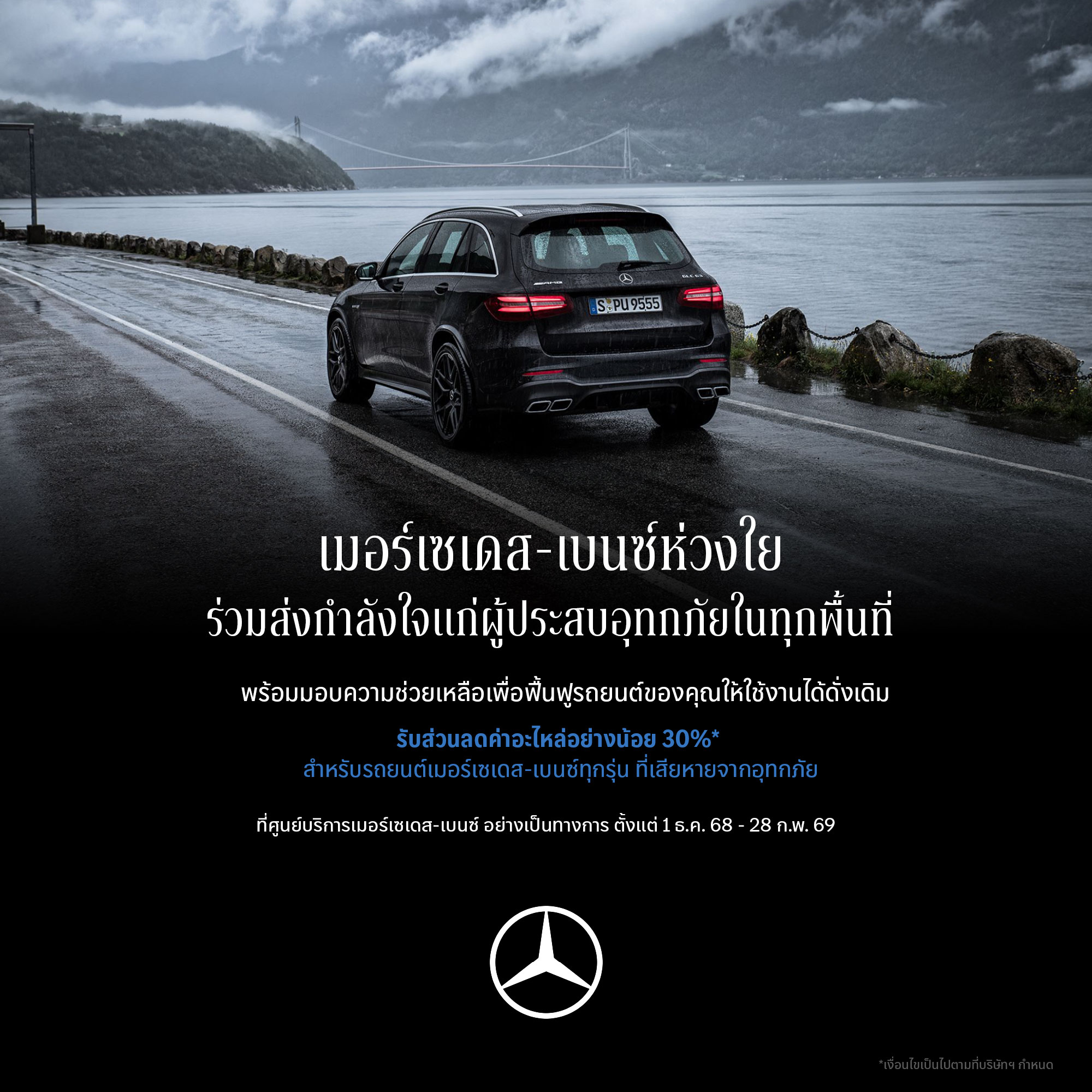 นอกจากนี้ เมอร์เซเดส-เบนซ์ พร้อมมอบส่วนลดค่าอะไหล่อย่างน้อย 30% สำหรับรถยนต์ทุกรุ่นที่ได้รับความเสียหายจากเหตุการณ์อุทกภัย เพื่อเป็นการช่วยเหลือและฟื้นฟูรถยนต์ของลูกค้าทุกคนให้กลับมาใช้งานได้ตามปกติ โดยลูกค้าที่ได้รับผลกระทบสามารถติดต่อได้ที่ศูนย์บริการเมอร์เซเดส-เบนซ์ อย่างเป็นทางการตั้งแต่วันที่ 1 ธันวาคม 2568-28 กุมภาพันธ์ 2569