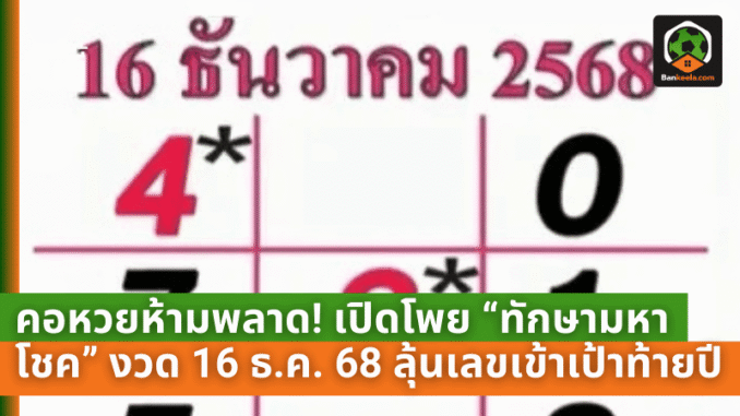 คอหวยห้ามพลาด! เปิดโพย “ทักษามหาโชค” งวด 16 ธ.ค. 68 ลุ้นเลขเข้าเป้าโค้งท้ายปี