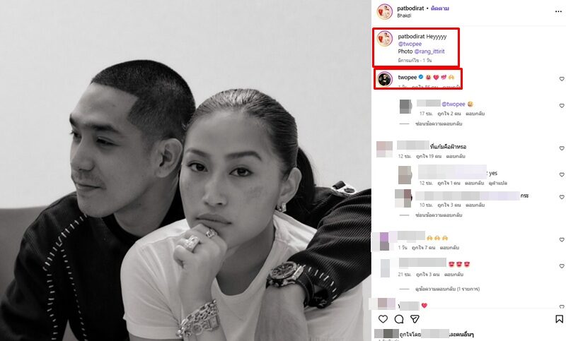 ไม่ต้องเดาแล้ว! ไฮโซแพท ลงรูปคู่รูปแรก พร้อมแท็ก โต้ง ทูพี ใส่อิโมจิหัวใจสีแดงหวานฉ่ำ เปิดตัวรักส่งท้ายปี แฟนๆ พากันคอมเมนต์รัวๆ