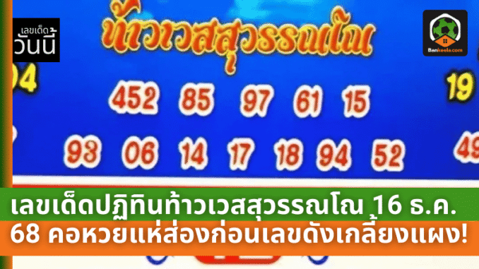 ปฏิทินท้าวเวสสุวรรณโณ งวด 16 ธันวาคม 2568 ให้เลขอะไรบ้าง