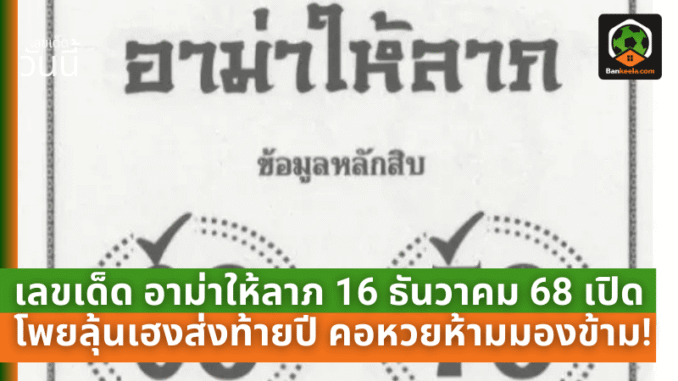 ที่มา : เลขเด็ด อาม่าให้ลาภ 16 ธันวาคม 68 เปิดโพยลุ้นเฮงส่งท้ายปี คอหวยห้ามมองข้าม! - บ้านกีฬา