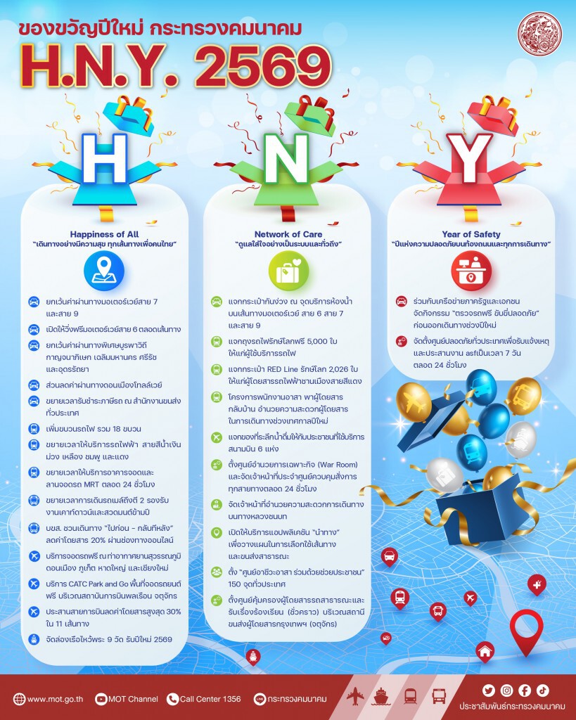 กระทรวงคมนาคมมอบของขวัญปีใหม่ 26 รายการแก่ประชาชน เพื่ออำนวยความสะดวกและลดค่าใช้จ่ายในการเดินทางช่วงเทศกาล