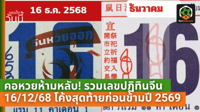 ที่มา : คอหวยห้ามหลับ! รวมเลขปฏิทินจีน 16/12/68 โค้งสุดท้ายก่อนข้ามปี 2569 - บ้านกีฬา