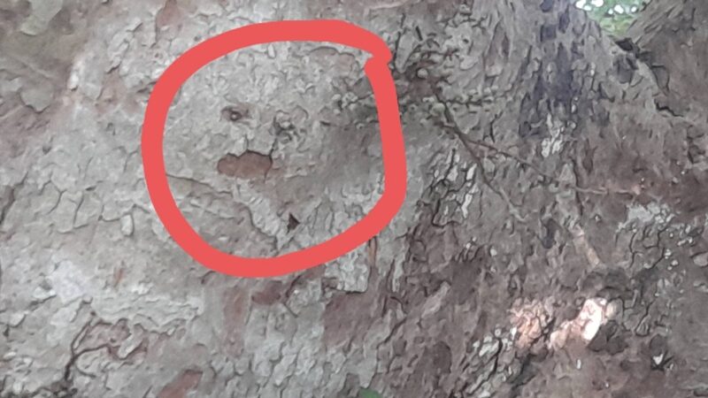 หลังจากนั้นมองขึ้นไปที่บริเวณกลางลำต้นมะเดื่อยักษ์ เห็นรูปคล้ายหน้าคนยิ่งแปลกใจ มองลึกยังเห็นเป็นตัวเลข 312 สายตาแต่ละคนเห็นต่างกัน
