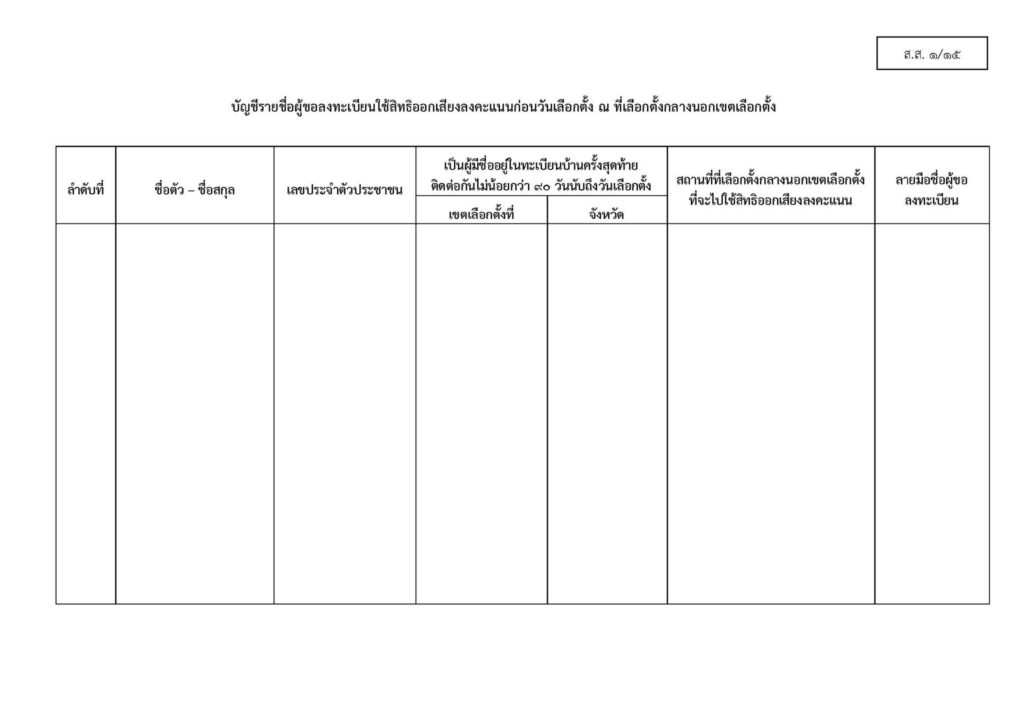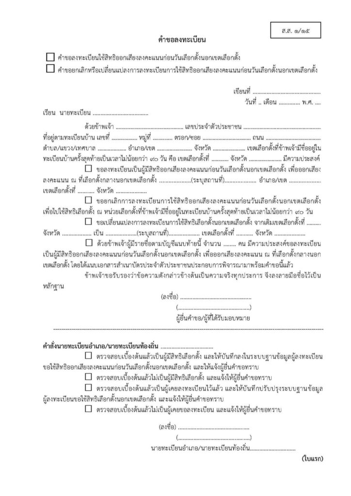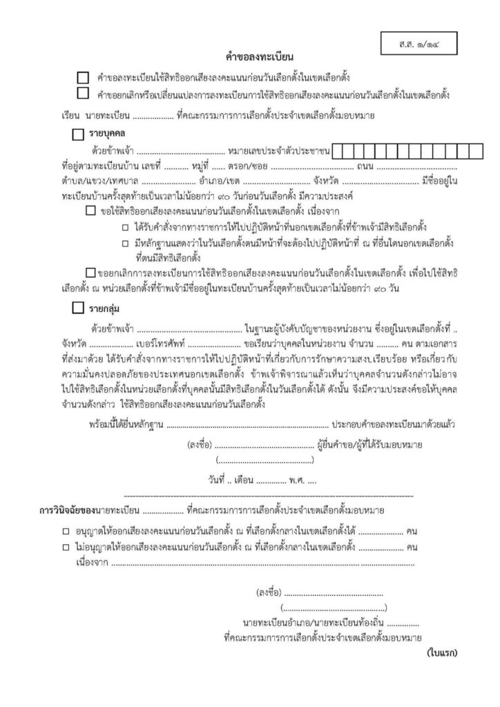 - สถานที่ที่ประสงค์จะใช้สิทธิเลือกตั้ง ก่อนวันเลือกตั้งนอกเขตเลือกตั้ง