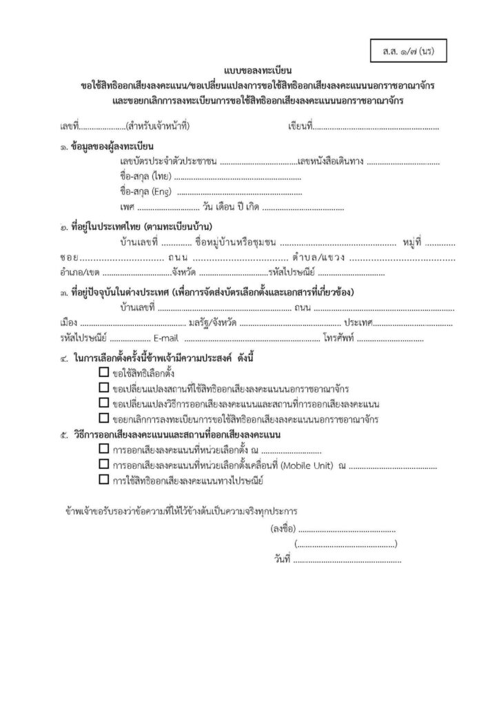 - หมายเลขหนังสือเดินทาง (กรณีลงทะเบียนเลือกตั้งนอกราชอาณาจักร)