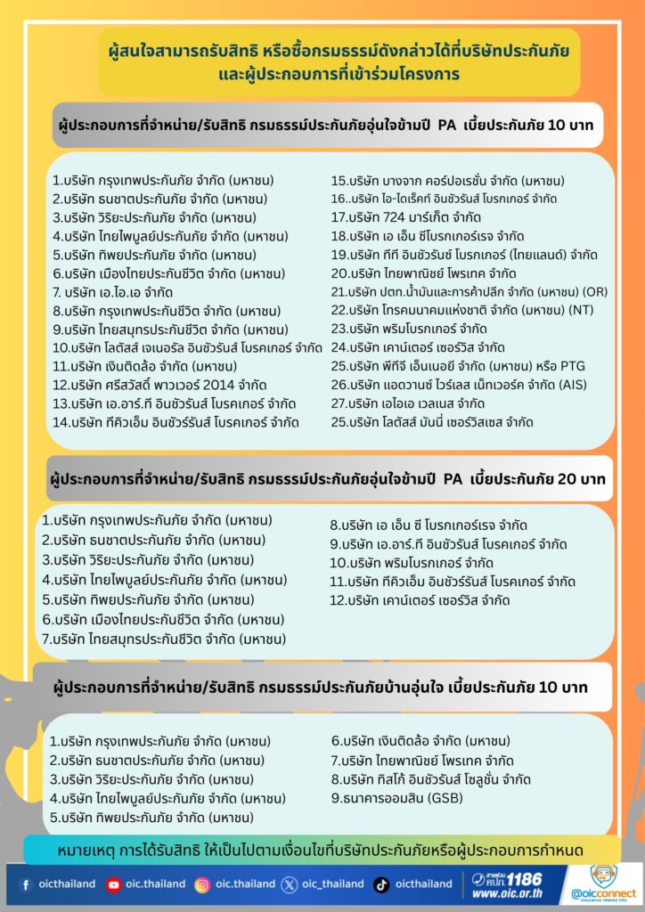 ที่มา : คปภ. มอบของขวัญปีใหม่ "ประกันภัย 20 บาท" คุ้มครองสูงสุด 2.5 แสนบาท