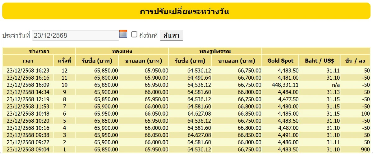 ที่มา : ราคาทองคำวันนี้ (23 ธ.ค.68) ปรับ 12 ครั้ง ล่าสุด ปิดตลาด พุ่ง 900 บาท