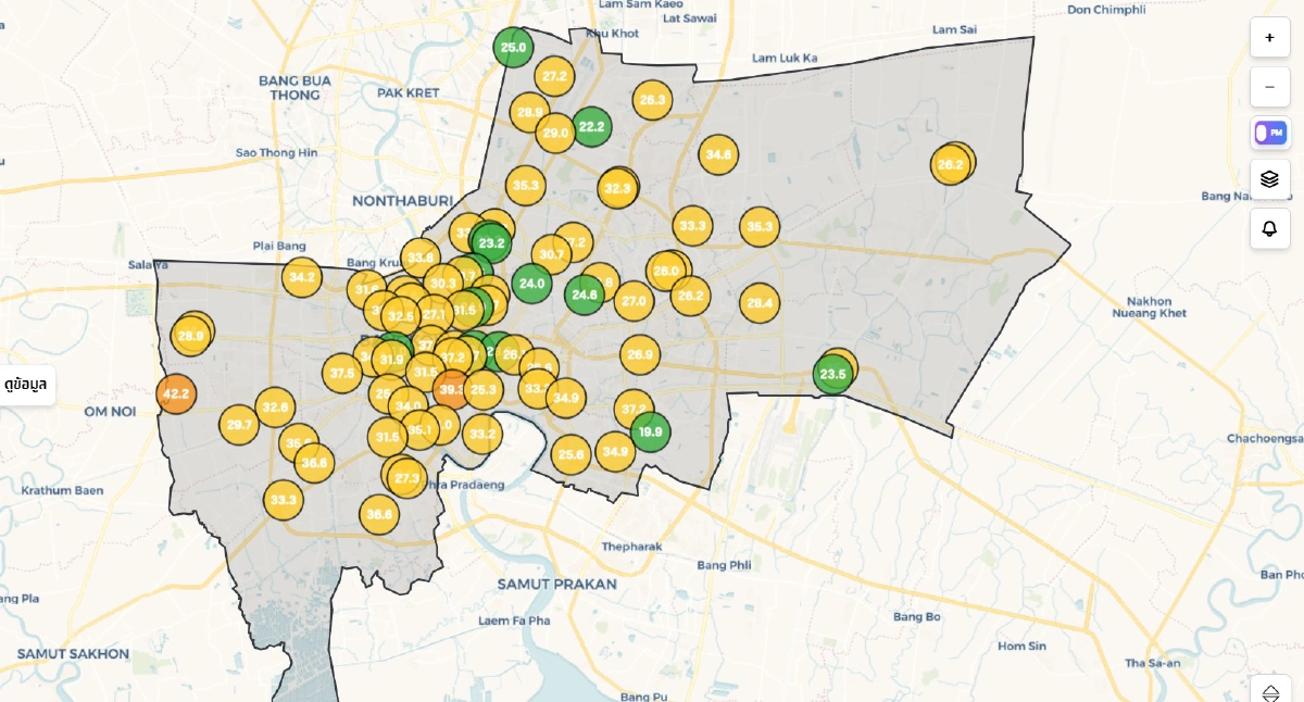 10 อันดับ ของค่าฝุ่น PM2.5 เขตสูงสุดในกรุงเทพมหานคร