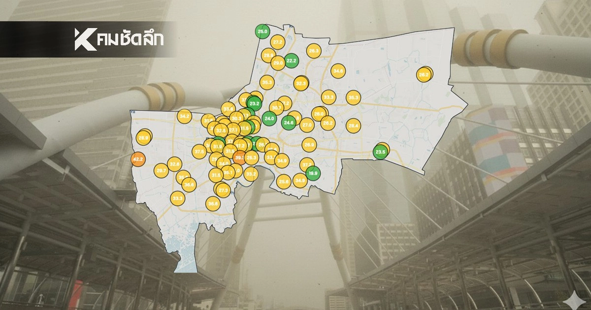 'ค่าฝุ่นPM2.5 กทม. วันนี้' 24 ธ.ค. 68 ' 2 เขต กทม.' ค่าฝุ่นสูงสุด ส่งผลต่อสุขภาพ พื้นที่ไหนเช็ก รายงานสถานการณ์ฝุ่นละออง เวลา 07:00 น. ศูนย์ข้อมูลคุณภาพอากาศกรุงเทพมหานครชี้ผลให้ระวัง