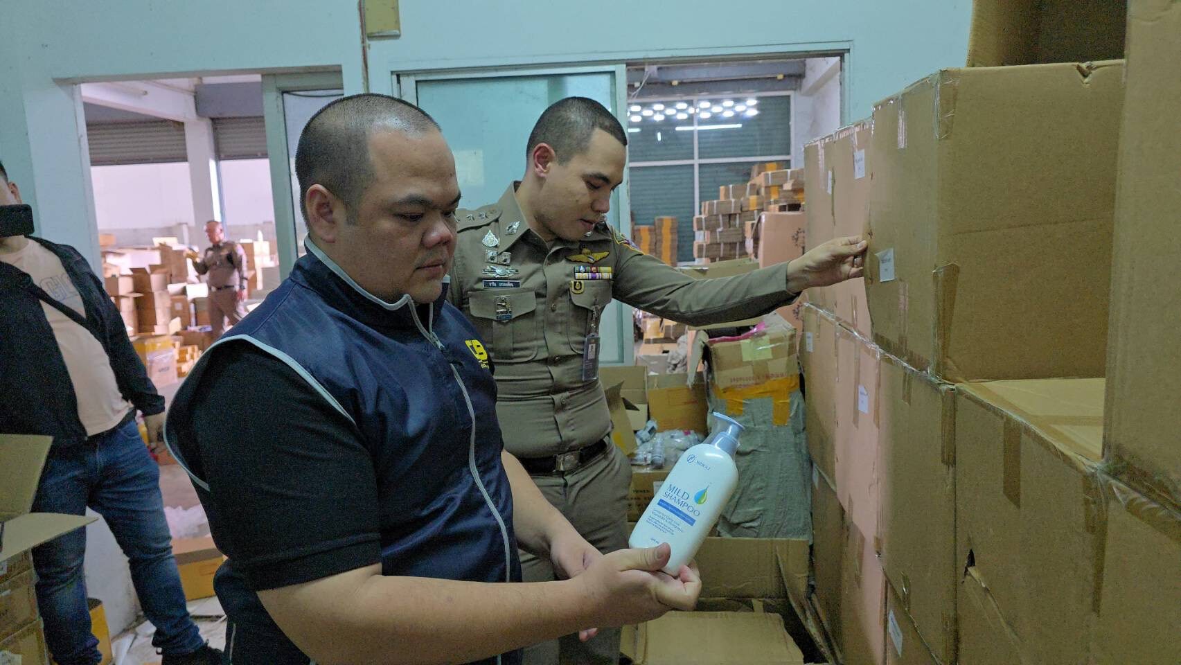 บุกทลายโกดังจีน ปลอมเครื่องสำอาง-ยาสระผม ยึดของกลางยี่ห้อดังกว่าแสนชิ้น มูลค่า 10 ล้านบาท