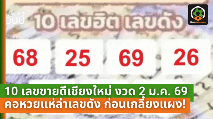 ที่มา : 10 เลขขายดีเชียงใหม่ งวด 2 ม.ค. 69 คอหวยเหนือแห่ล่าเลขดัง ก่อนเกลี้ยงแผง! - บ้านกีฬา