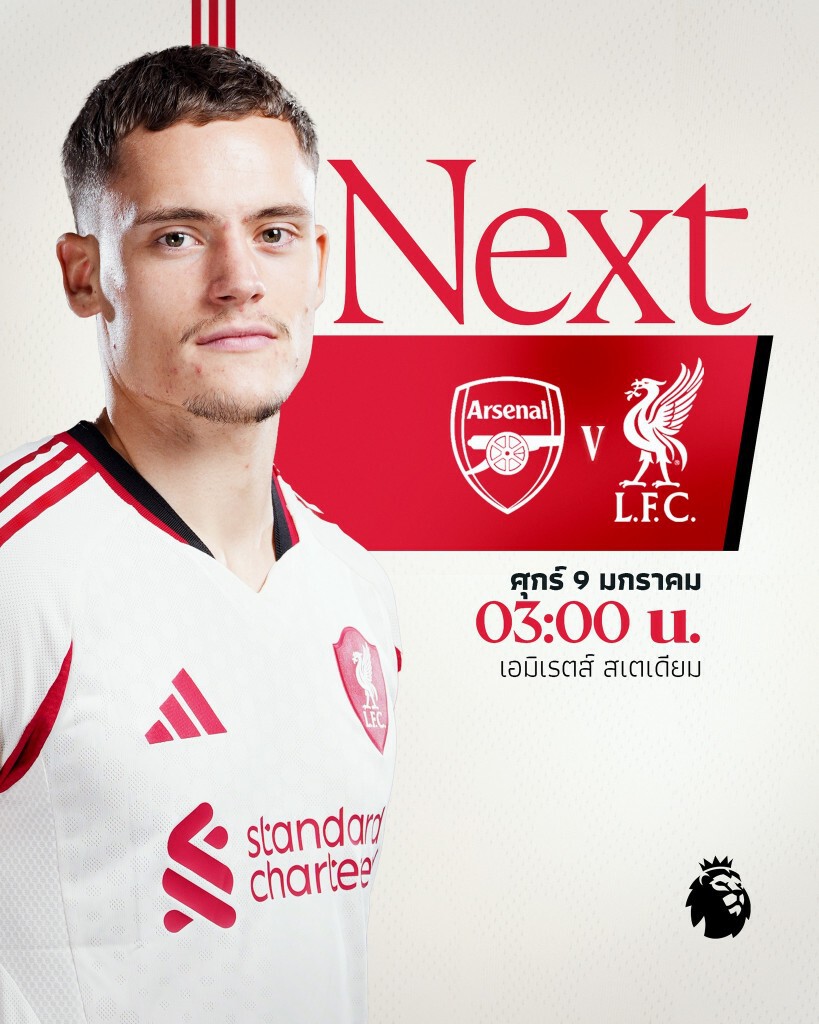 ปิดท้ายด้วยบิ๊กแมตซ์ของสัปดาห์นี้ ปืนใหญ่ อาร์เซนอล จ่าฝูง จะเปิดเอมิเรสต์ สเตเดี้ยม รับการมาเยือนของ หงส์แดง ลิเวอร์พูล โดยคู่นี้จะฟาดแข้งกันในคืนวันพฤหัสบดี หรือเช้ามืดวันศุกร์เวลาตีสาม แฟนบอลไทยสามารถติดตามชมการถ่ายทอดสด ดูบอลสด ฟุตบอลพรีเมียร์ลีกทุกคู่ทางช่อง Monomax และ AIS PLAY ทั้งนี้สามารถตรวจสอบโปรแกรมการแข่งขัน ลิงก์ดูบอลสด พร้อมทั้งอัปเดตตารางคะแนนล่าสุดที่นี่