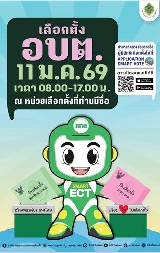 ที่มา : สำนักงาน กกต. เชิญชวนไปใช้สิทธิเลือกตั้ง อบต. วันที่ 11 ม.ค. 2569