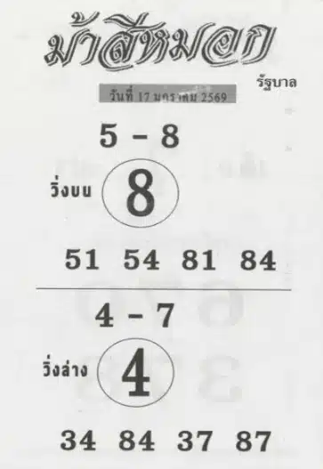จัดมาให้แล้ว เลขเด็ด ม้าสีหมอก งวด 17 มกราคม 2569 แนวทางเลขเด่น-เลขท้าย 2 ตัว ฉบับเต็ม คอหวยพลาดไม่ได้ ลุ้นรวยฉลองวันครู 2569