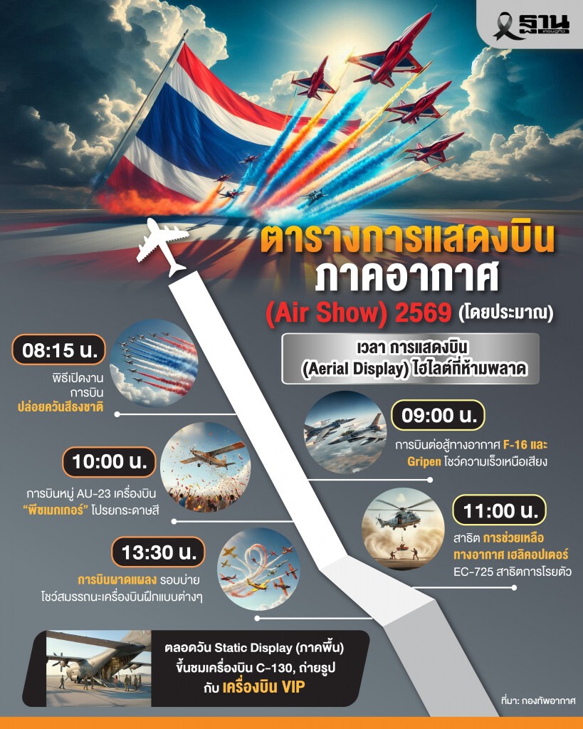 ที่มา : ตารางบินแสดงโชว์ วันเด็ก 2569 กองทัพอากาศ ดอนเมือง ดูเลย