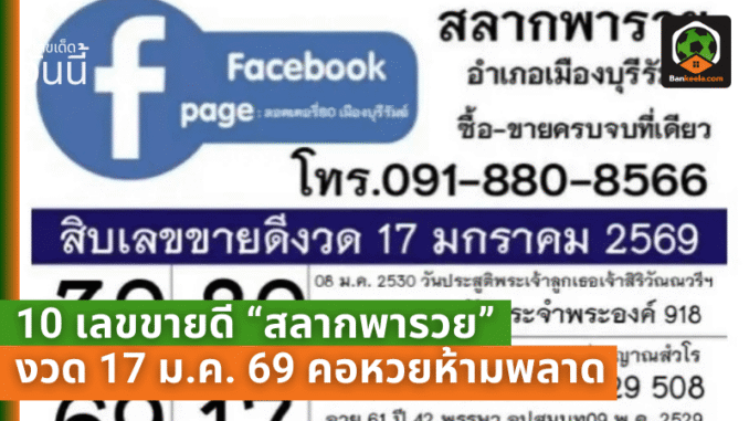เจาะสิบเลขขายดี สลากพารวย งวด 17 ม.ค. 69