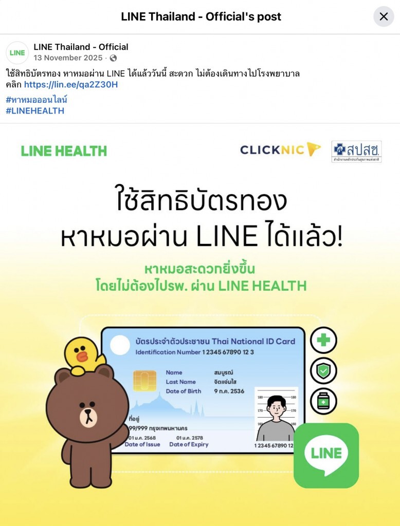 - ผู้มีสิทธิบัตรทองสามารถใช้บริการปรึกษาแพทย์ออนไลน์ผ่านแอปพลิเคชัน LINE HEALTH ได้ฟรี