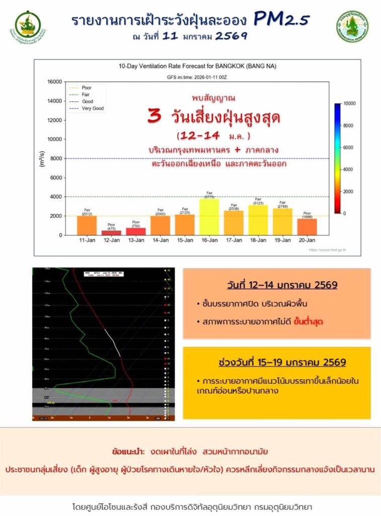 ส่วนในช่วงวันที่ 13 – 18 ม.ค. 69 ขอให้ประชาชนบริเวณประเทศไทยตอนบนเพิ่มความระมัดระวังในการสัญจรผ่านบริเวณที่มีหมอกไว้ด้วย
