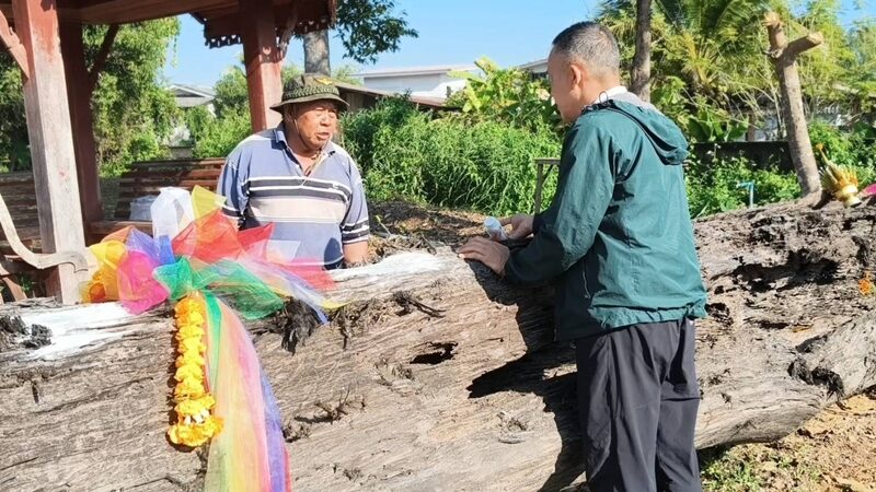 ชาวบ้านในพื้นที่ให้ข้อมูลกับผู้สื่อข่าวเกี่ยวกับต้นตะเคียนทอง