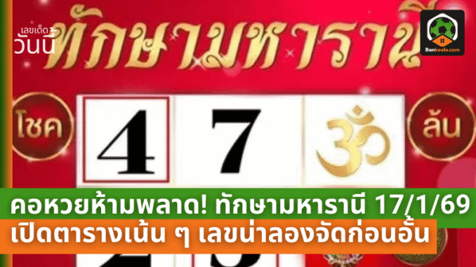 ที่มา : คอหวยห้ามพลาด! ทักษามหารานี 17/1/69 เปิดตารางเน้น ๆ เลขน่าลองจัดก่อนอั้น - บ้านกีฬา