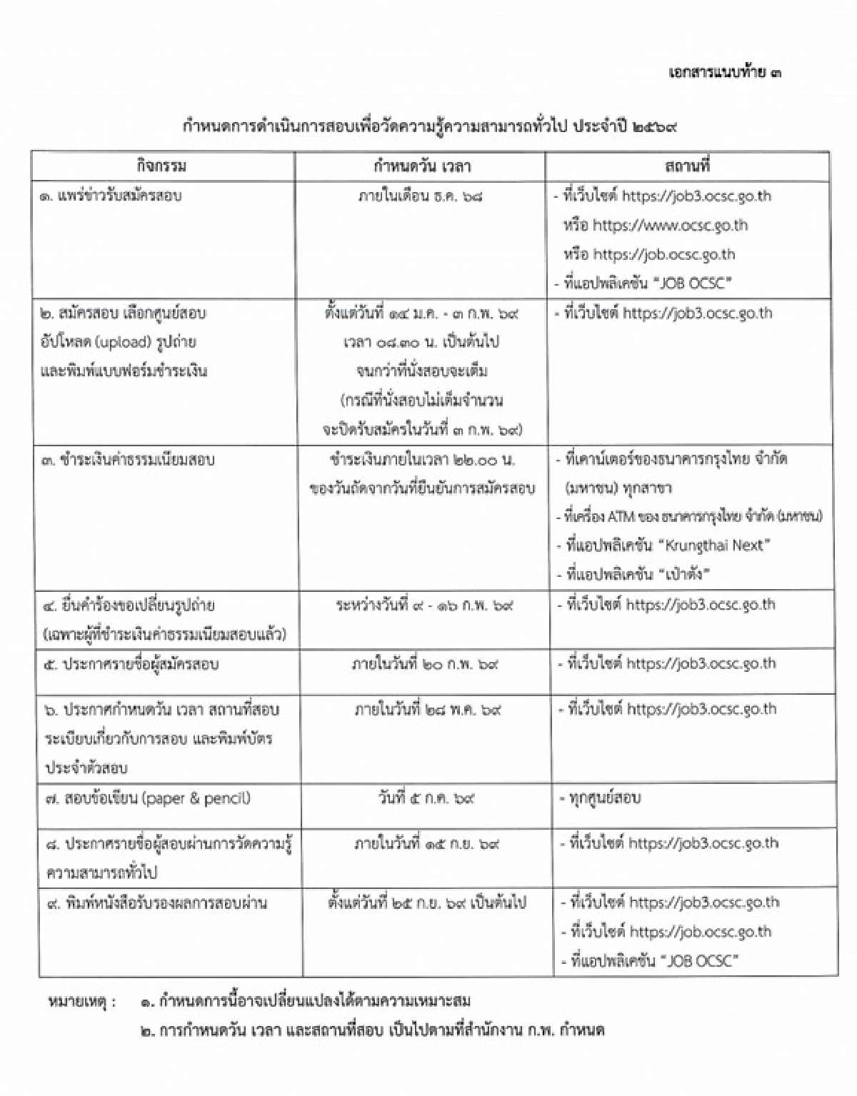 https://job3.ocsc.go.th ลิงค์สมัคร "สอบ ก.พ. 69" จำนวน 450,000 ที่นั่ง รอบ Paper & Pencil เช็กขั้นตอน - "ศูนย์สอบ ก.พ. 69"