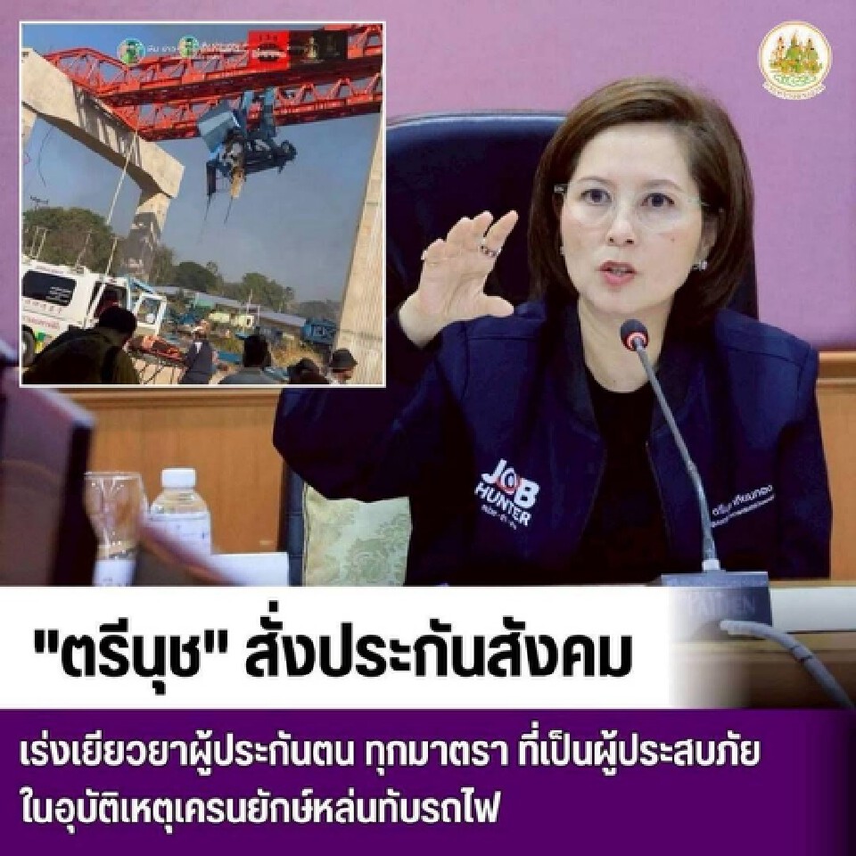 กระทรวงแรงงานสั่งการให้สำนักงานประกันสังคมเร่งช่วยเหลือผู้ประกันตนที่ได้รับบาดเจ็บจากเหตุการณ์เครนหล่นทับรถไฟ