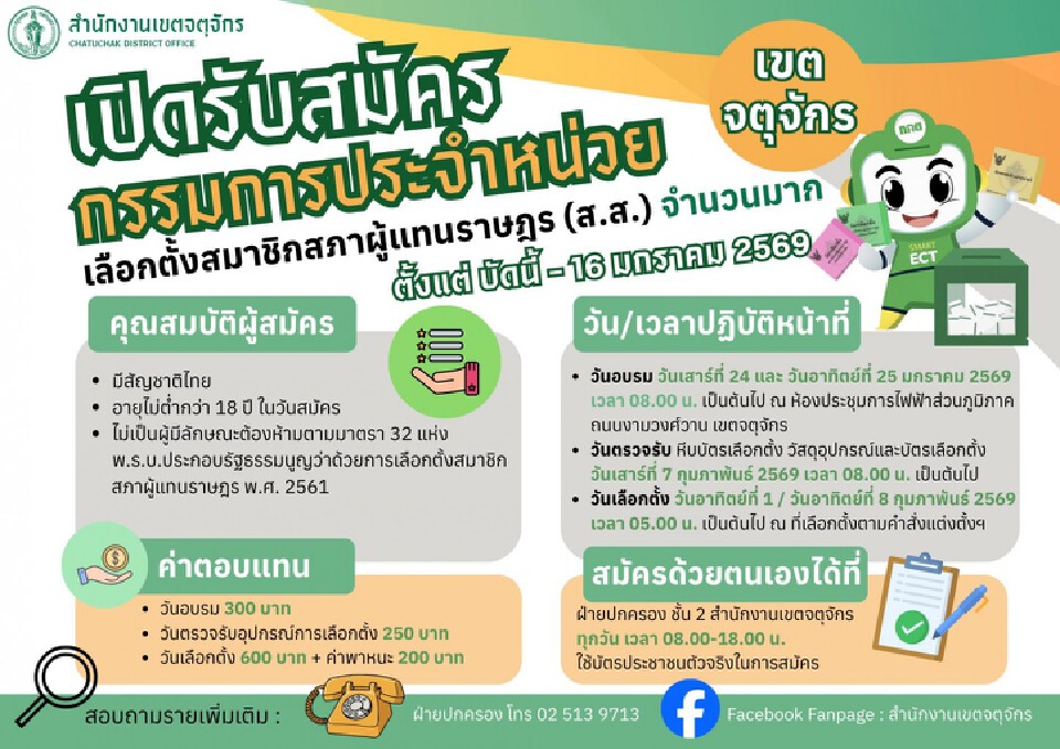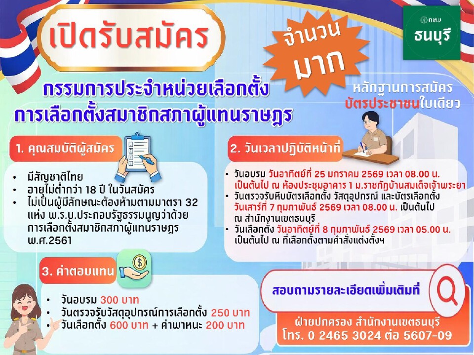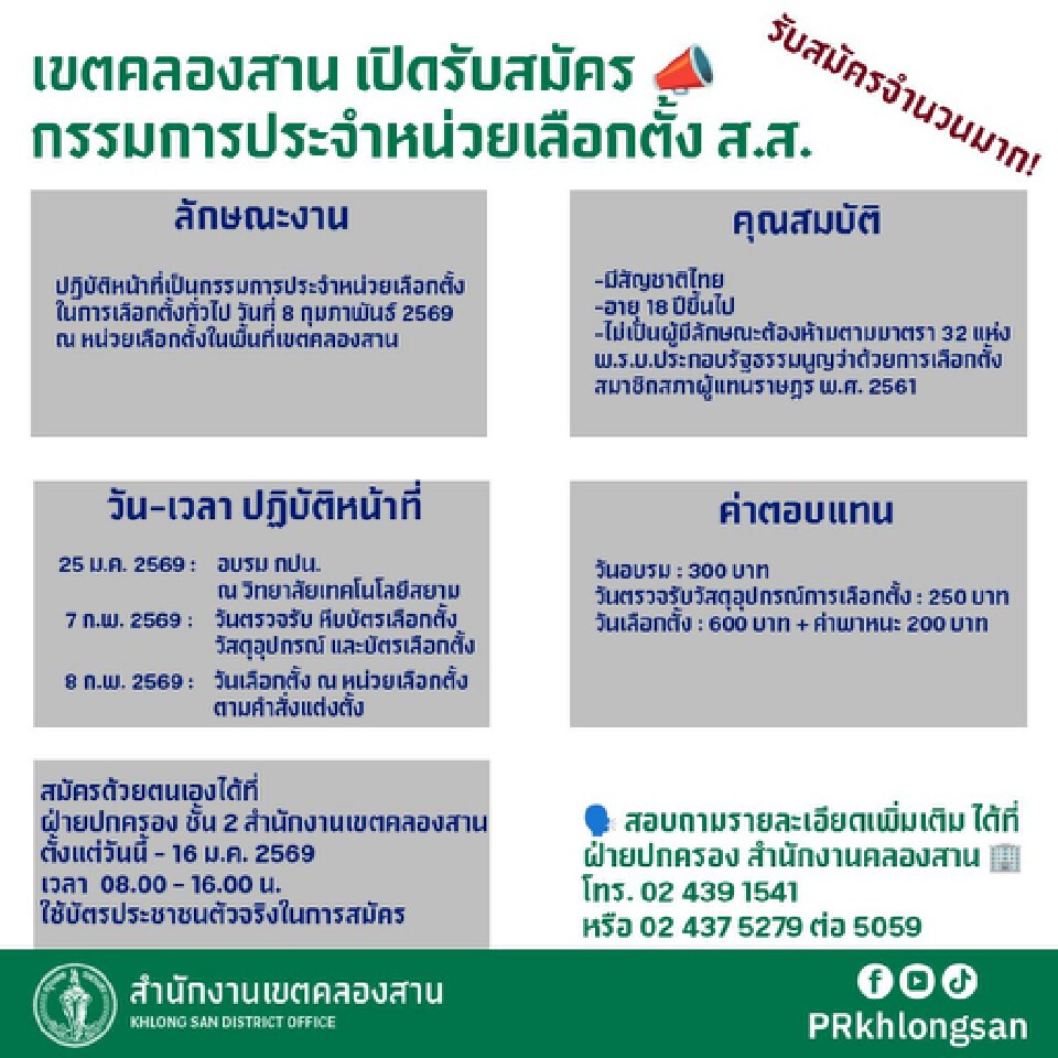 ที่มา : กทม.เปิดรับสมัครกรรมการประจำหน่วยเลือกตั้ง 2569 เช็กคุณสมบัติ เงื่อนไขที่นี่