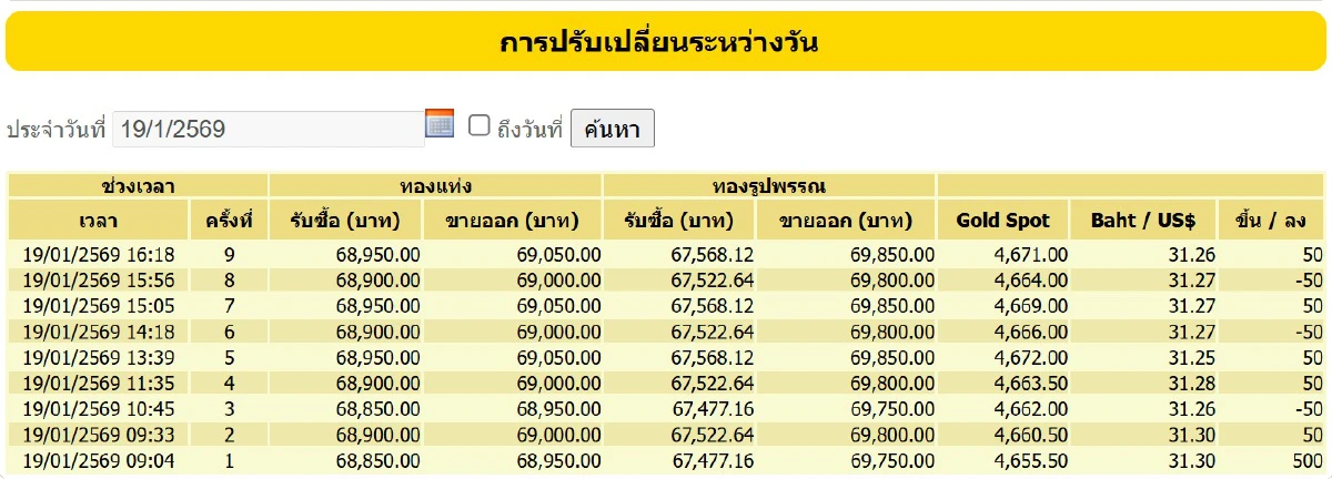 ที่มา : ราคาทองวันนี้ (19 ม.ค. 69) ปรับ 9 ครั้ง ล่าสุด หลังปิดตลาด บวก 600 บาท